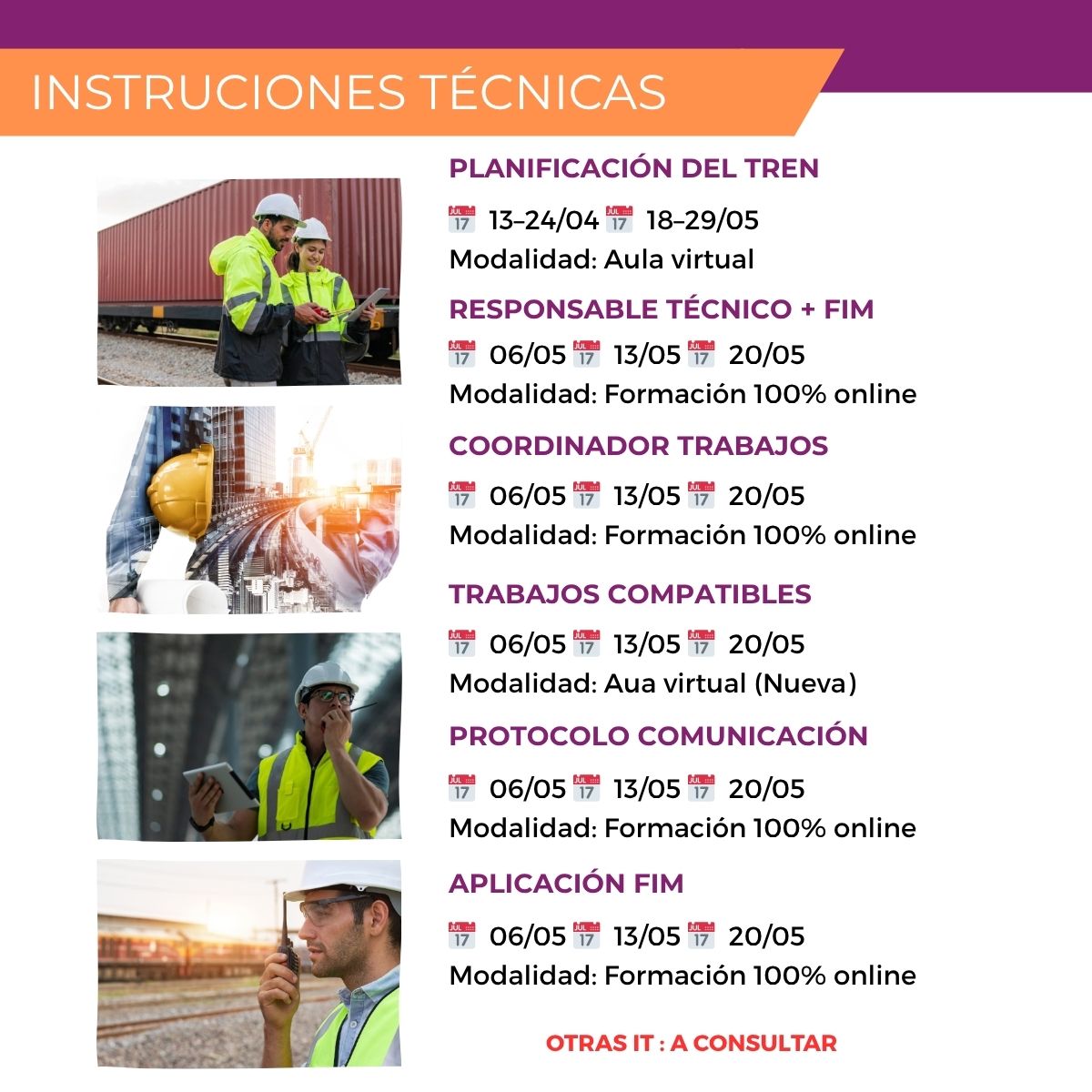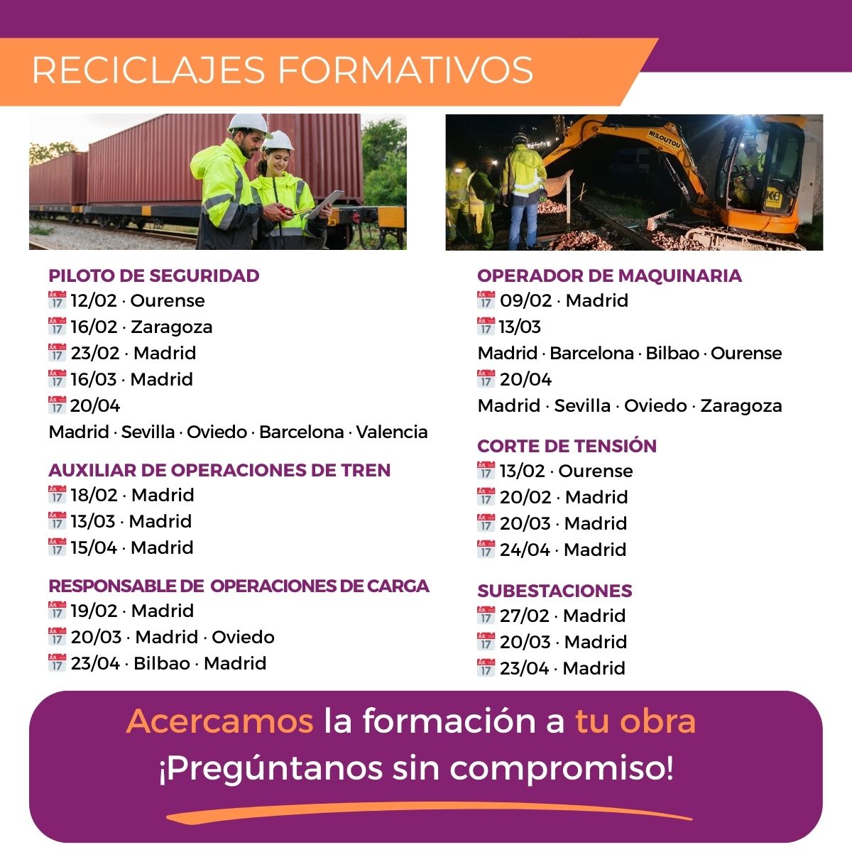 Consulta nuestro calendario de cursos disponibles mes a mes y sedes en las que se realizarán.